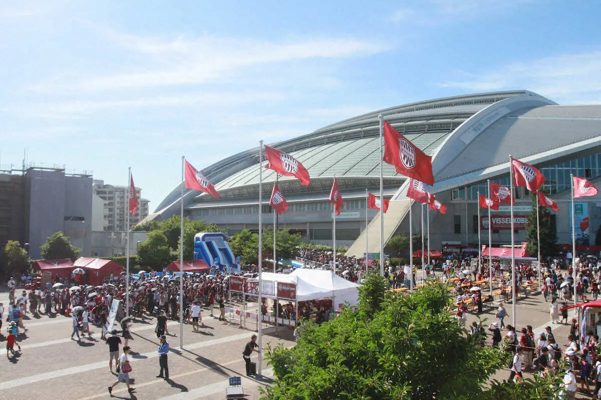 クラブは「ヴィッセル神戸サポーターズシートで振られていた大旗が、ピッチ上の選手に接触する可能性があった事象を確認いたしました」と報告。