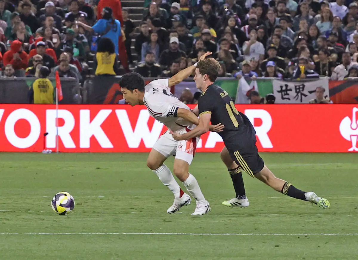<メキシコ・日本>後半、競り合う遠藤(右)(撮影・西海健太郎) Photo by スポニチ 遠藤主将 守備引き締め無失点貢献も「勝ち切りたい思いは自分の中でもあ… ギャラリーで見る この記事のフォト 2025年09月07日の画像一覧 もっと見る 2025年09月07日の画像をもっと見る