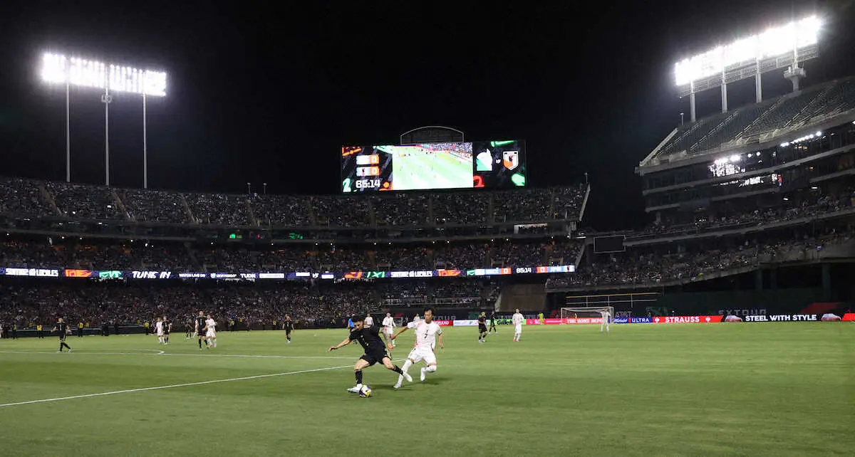 昨年まで大リーグ、アスレチックスの本拠として使用された試合会場は、北中米独特の雰囲気に包まれた。