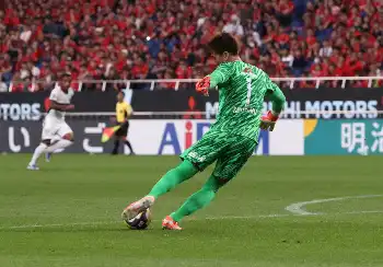 トットナム戦の後半、ゴール前のチャンスを止められたブライトン三笘(左)(ロイター)