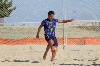 練習前に円陣を組んで入江監督の話を聞く選手たち