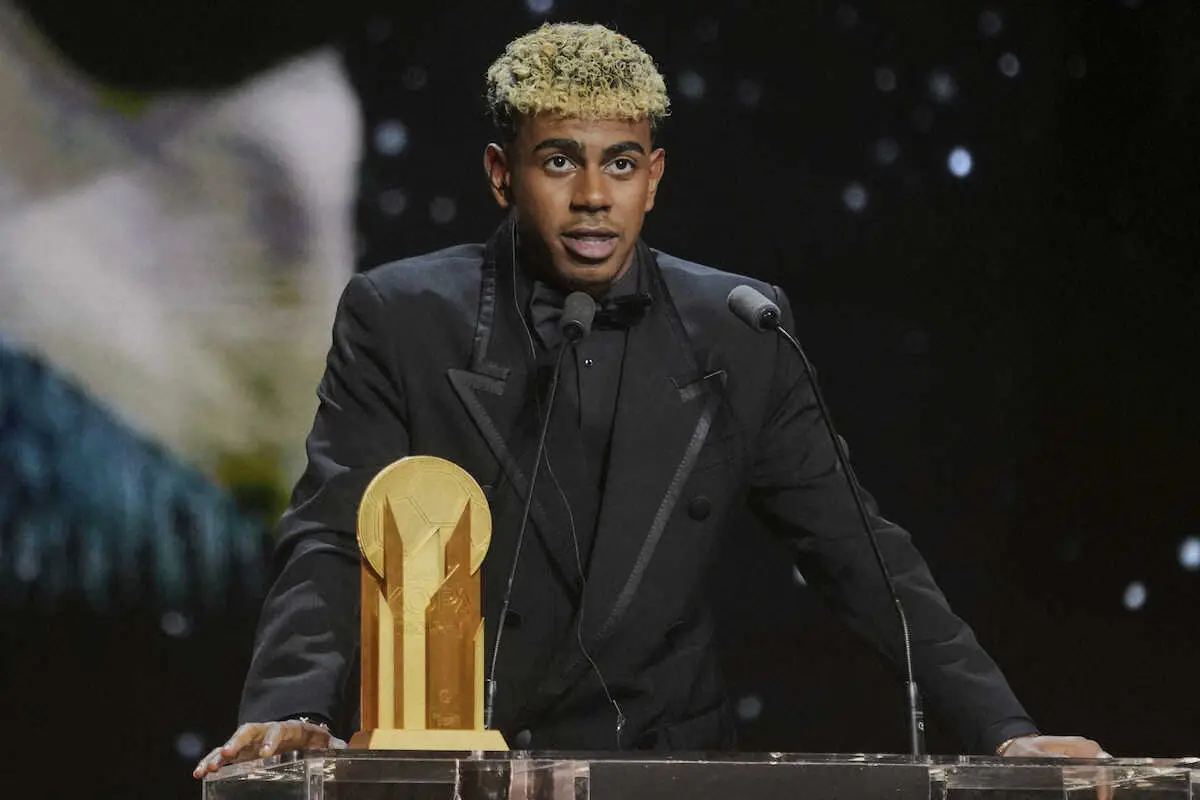 表彰式の会場で家族と記念撮影するヤマル(左から2人目)(AP) Photo by AP 18歳ヤマルはバロンドール最年少受賞に届かず 記録は怪物ロナウドの21歳… ギャラリーで見る この記事のフォト 2025年09月23日の画像一覧 もっと見る 2025年09月23日の画像をもっと見る