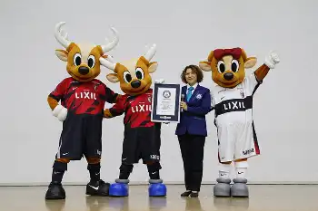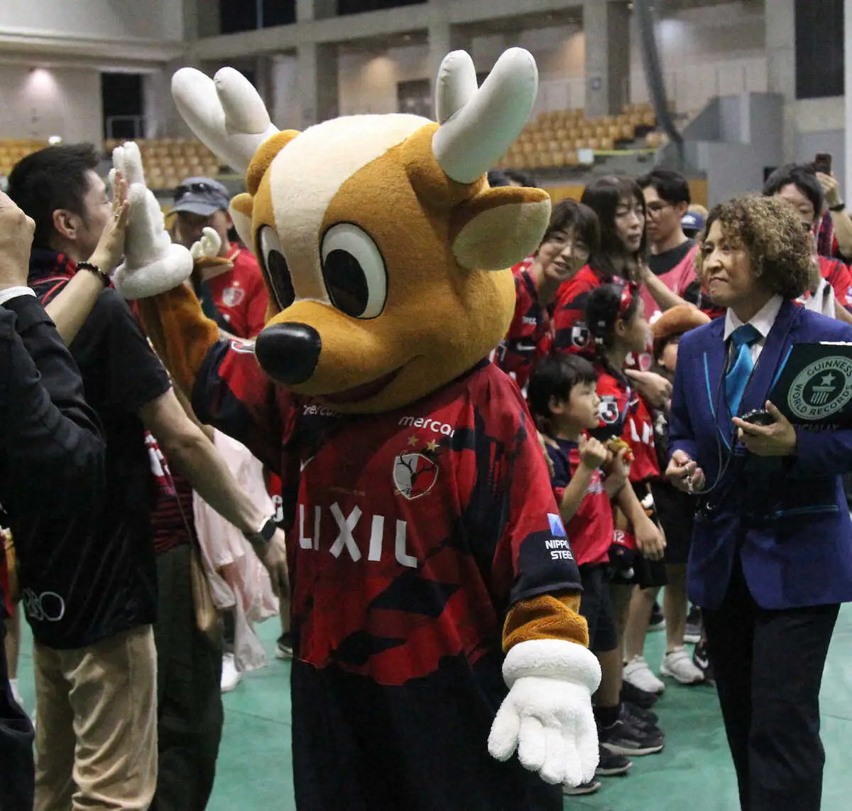 J1鹿島マスコット「アントン」がギネス世界記録! ファンとのハイタッチチャレンジで1時間で2219回