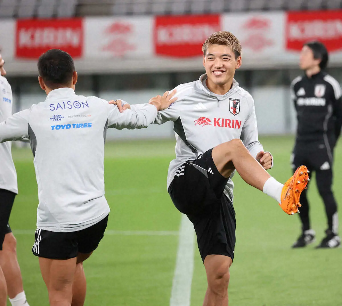 はやる気持ちを抑えきれない。前日練習のピッチに真っ先に姿を見せた堂安は、リラックスした表情で芝生の感触を確かめた。