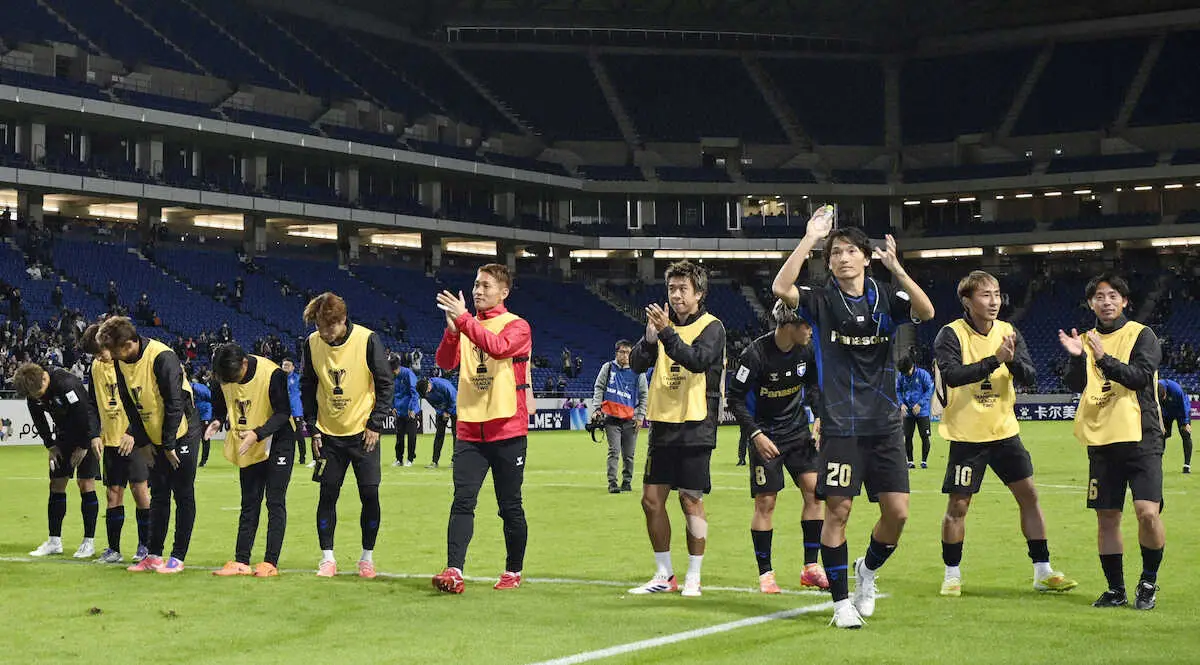 ナムディンに勝利し、サポーターにあいさつするG大阪イレブン=パナスタ