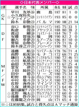 サッカー日本代表メンバー26人発表 ( 2025年11月6日 )
