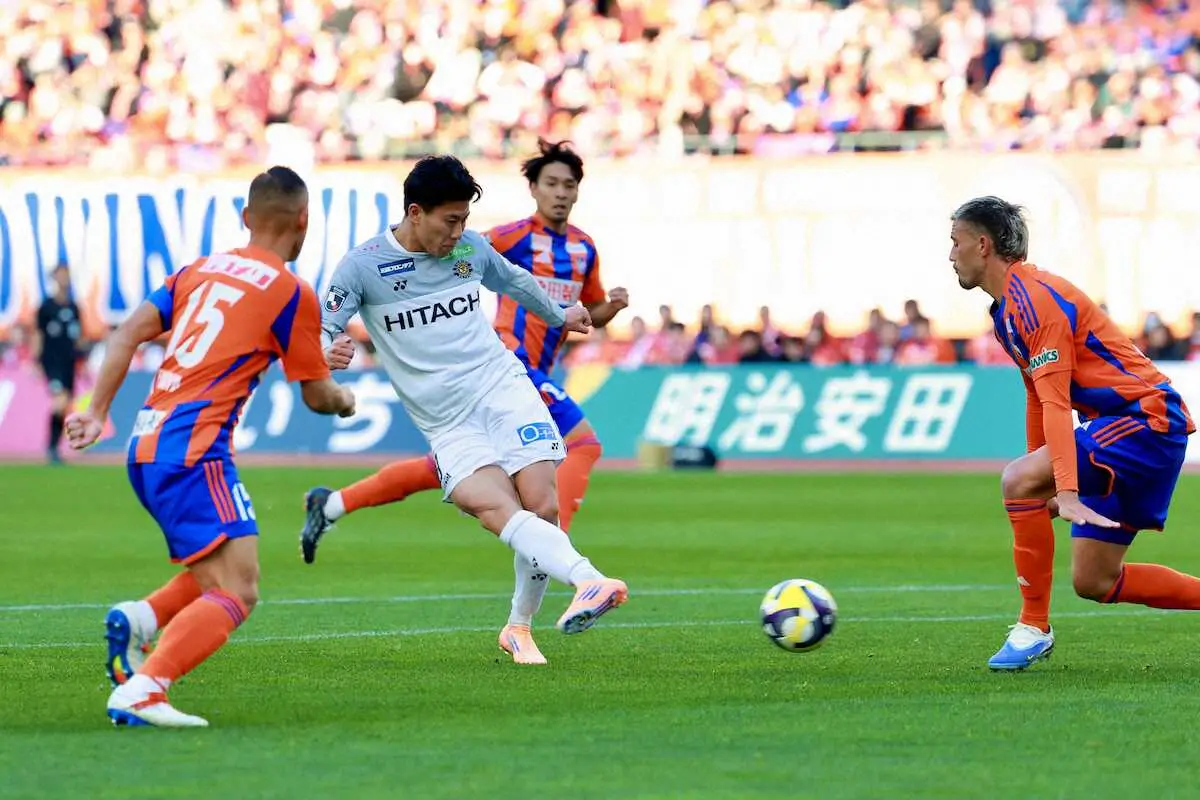 後半、ハットトリックとなる自身3点目のゴールを決め、サポーターからの声援に応える柏・細谷(撮影・松永 柊斗) Photo by スポニチ 14年ぶりV狙う柏が快勝 エースFW細谷が自身初ハット達成 首位・鹿島と1… ギャラリーで見る この記事のフォト 2025年11月30日の画像一覧 もっと見る 2025年11月30日の画像をもっと見る