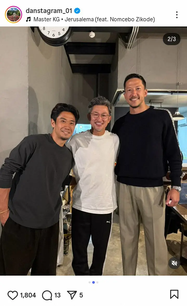 元サッカー日本代表との3ショットを披露した。