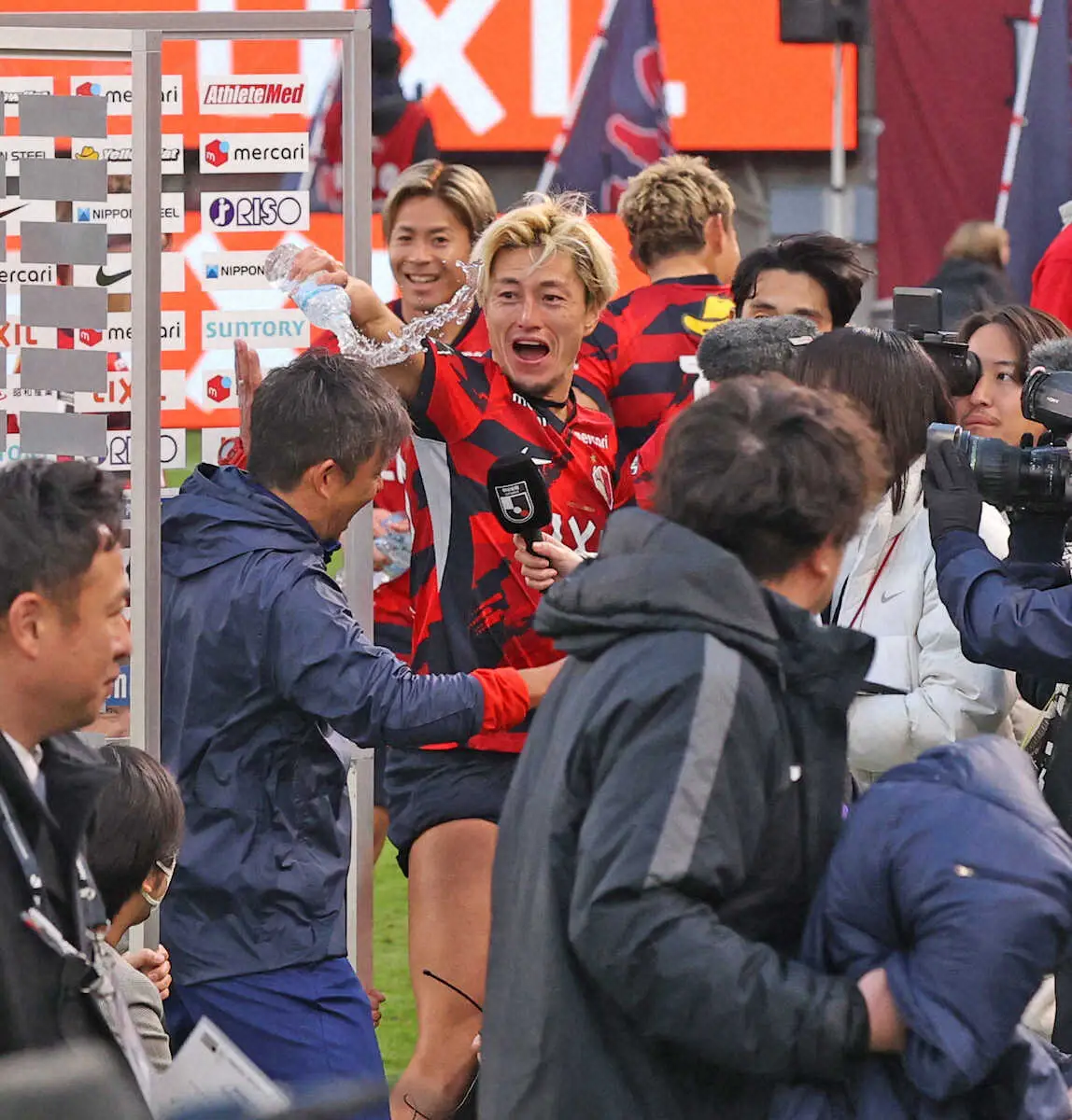 <鹿島・横浜M>優勝を喜ぶ鈴木(中)ら鹿島イレブン(撮影・西海健太郎) Photo by スポニチ 鹿島・鬼木監督 FW鈴木優磨にシャーレを手渡したワケ「あんな風ぼうです… ギャラリーで見る この記事のフォト 2025年12月06日の画像一覧 もっと見る 2025年12月06日の画像をもっと見る