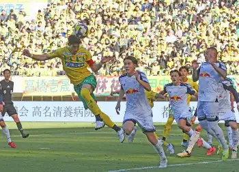 <千葉・大宮>後半、ゴールを決める千葉・カルリーニョス・ジュニオ(右から2人目)(撮影・西海健太郎)
