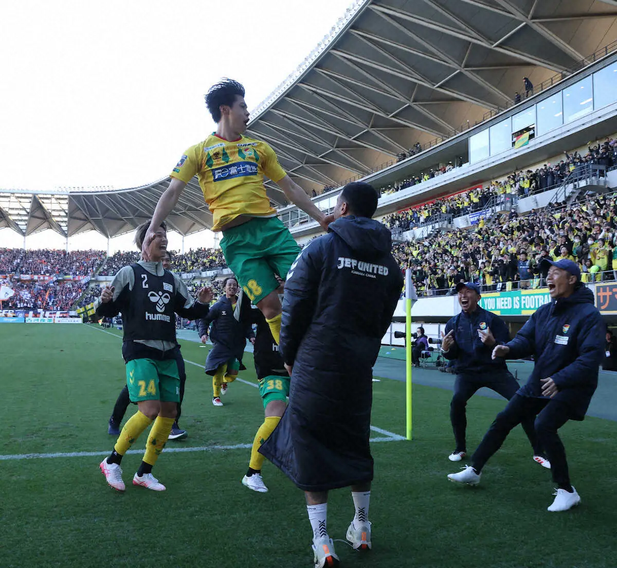 <千葉・大宮>後半、ゴールを決め喜ぶ千葉・河野(撮影・西海健太郎)