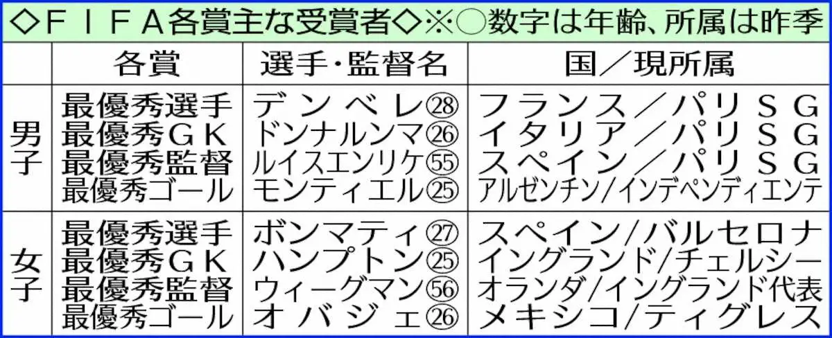 パリSGのFWデンベレ(AP) Photo by AP パリSG・デンベレ FIFA最優秀選手に初選出 バロンドールに続く2冠 ギャラリーで見る この記事のフォト 2025年12月18日の画像一覧 もっと見る 2025年12月18日の画像をもっと見る