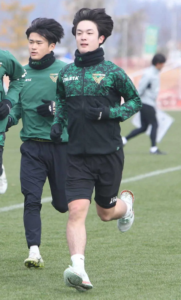 宮崎県都城市でキャンプ中の東京Vは18日、霧島酒造スポーツランド都城で2部練習を行った。16日にユースからトップ昇格が発表されたMF仲山獅恩(18)はこの日からチームに本格合流。右太腿裏の肉離れの影響で別メニューとなったが、「開幕戦を狙っている。そこまでに本調子になれたら」と堂々と話した。