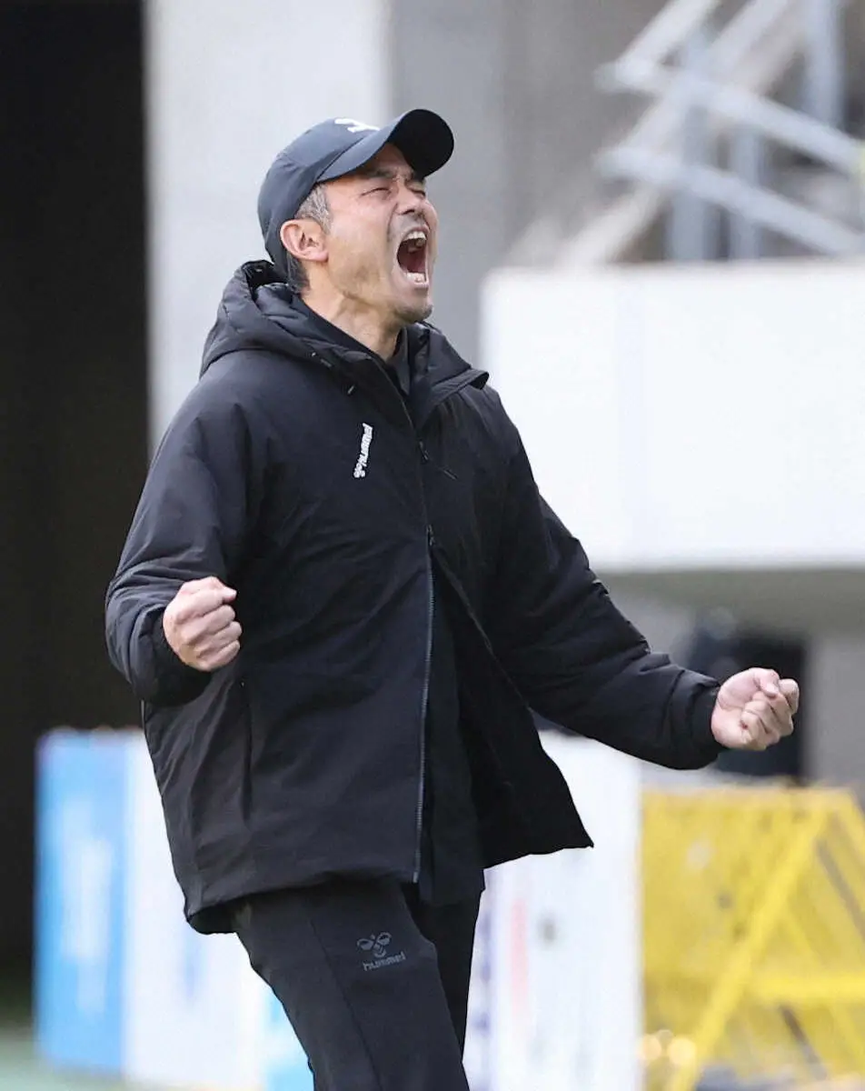 前半は押し込まれる展開が続いたが、集中力を切らさずに0―0でしのいだ。待望の先制点は後半3分、DF河野の浮き球のパスをMFエドゥアルドが頭で落とすと、最後はMF津久井が右足で蹴り込んだ。後半16分には右CKで生まれたゴール前の混戦からFW石川が押し込み追加点。終盤は猛攻を受けて後半43分に失点したが、逃げ切った。
