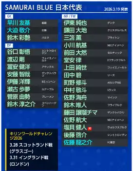所属クラブの公式戦では時間を調整してのプレーが続いているだけに「コンディションを確認したい」ともし、「長く(代表から)離れていた選手にはチームコンセプトをもう1度落とし込むこと、今のコンディションからW杯に向けてさらに上がることを想定している」としていた。