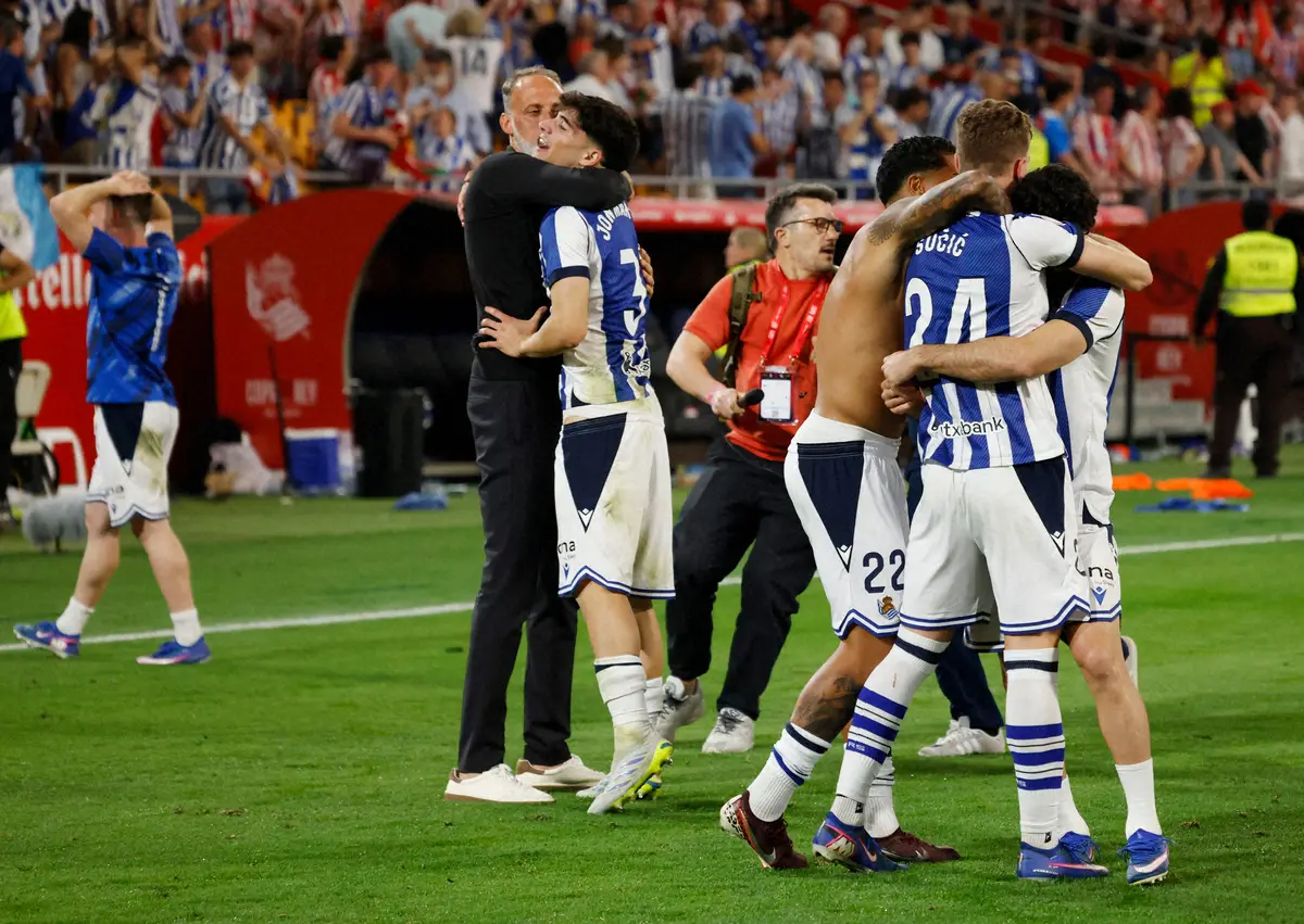 スペイン国王杯を制し、喜ぶRソシエダードイレブン(ロイター)
