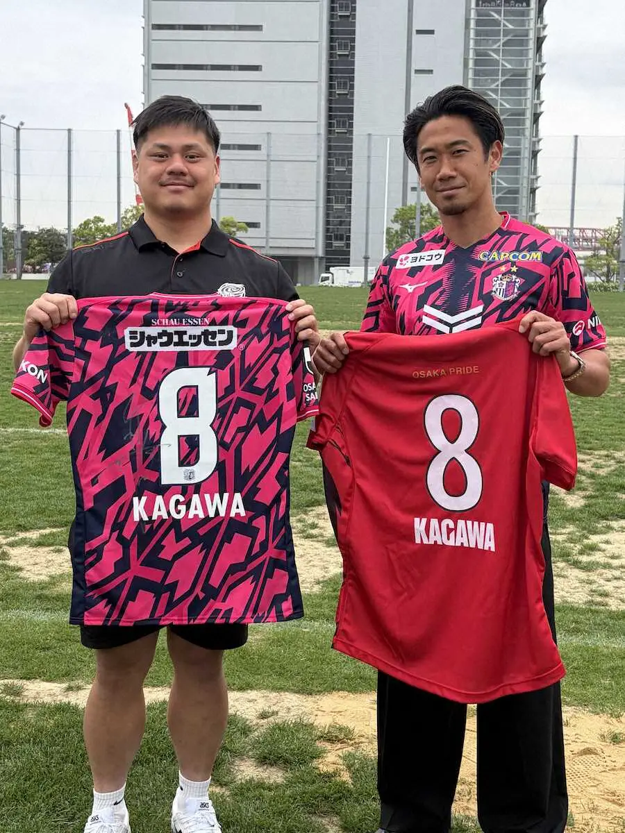 「ジャージープレゼンテーション」の会場に姿を現すと、大柄な選手たちから「おおー!」と歓声。どよめきや「香川真司」コールもわき起こった。選手たちの前に立った香川は「呼んでいただいて光栄だし、同じ本拠地で戦っているので。関西は野球が人気で、皆さんと手を取り合いながら(サッカーとラグビーを)盛り上げていきたい」と語った。