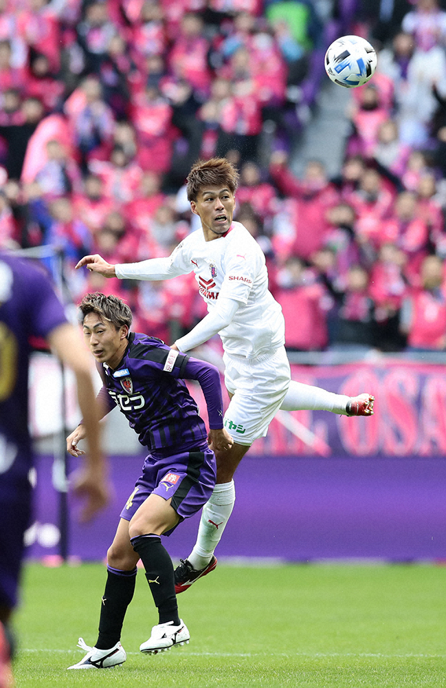 <京都・C大阪>白のユニホームを纏ったこの日のスタメン(前列左から)奥埜博亮、坂元達裕、清武弘嗣、藤田直之、レアンドロ・デサバト、松田陸、(後列左から)丸橋祐介、ブルーノ・メンデス、マテイ・ヨニッチ、木本恭生、アン・ジュンス (撮影・後藤 大輝)