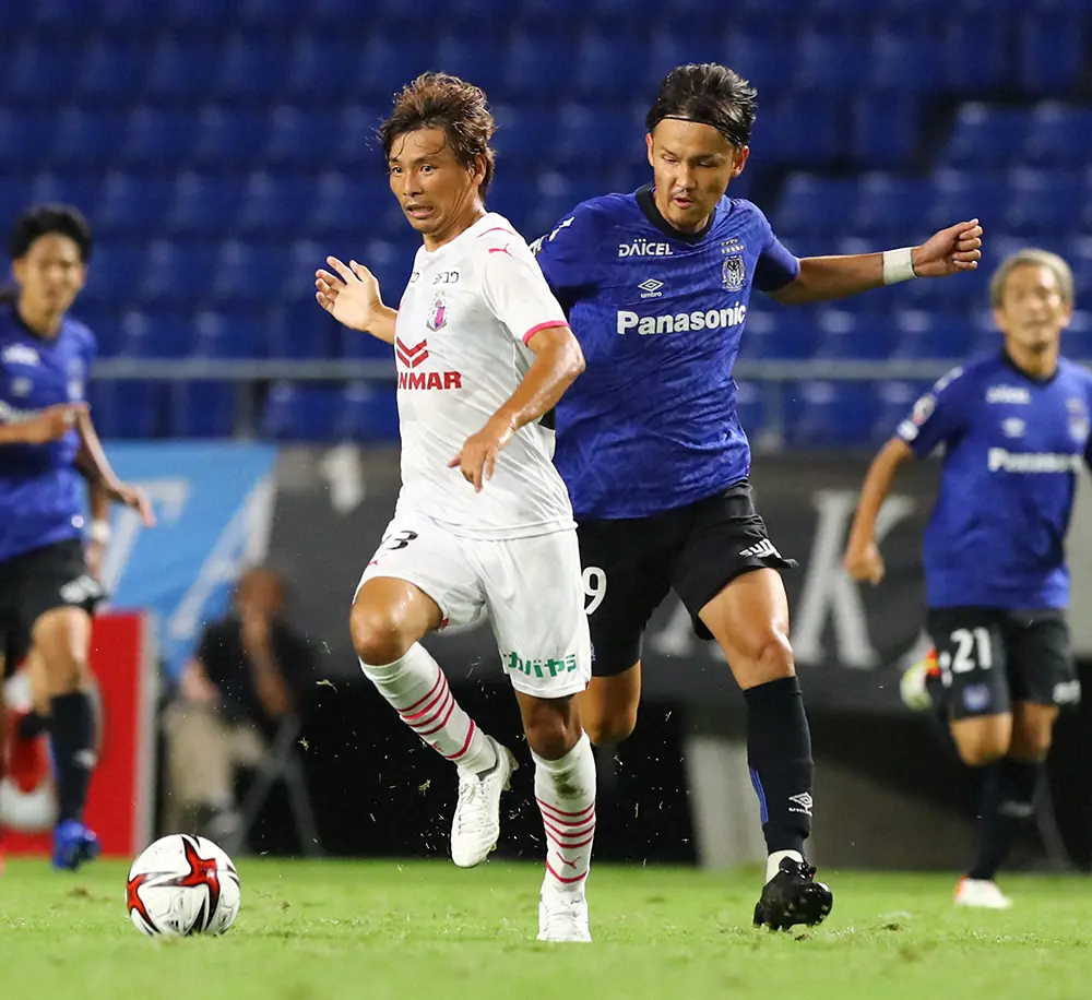 <G大阪・C大阪>後半、競り合うC大阪・乾(左)とG大阪・宇佐美(撮影・後藤 大輝)