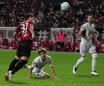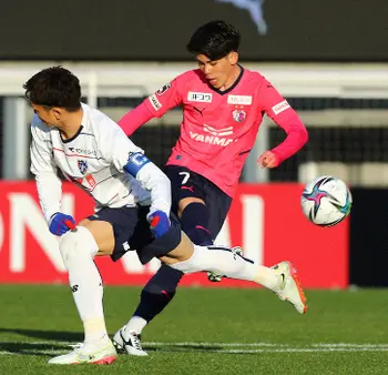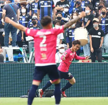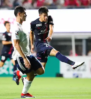 <C大阪・FC東京>後半、シュートを放つ上門(右)(撮影・後藤 大輝)