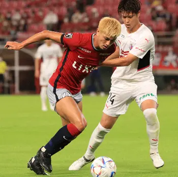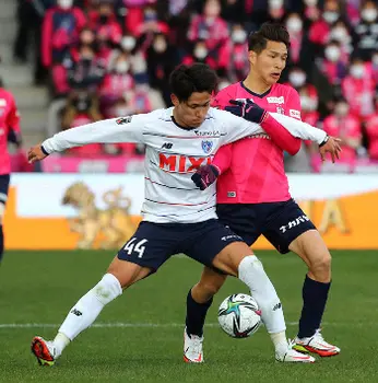 <C大阪・FC東京>前半、FC東京・松木(左)と競り合う原川(撮影・後藤 大輝)