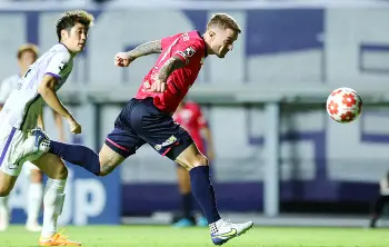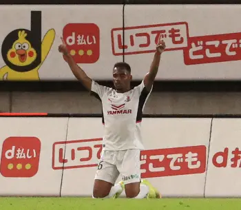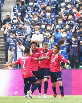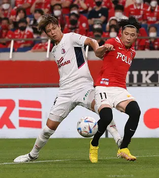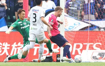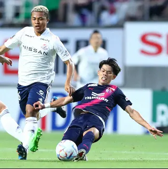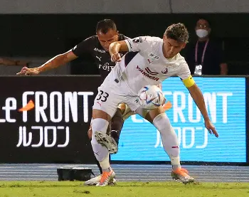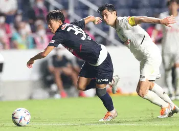 <C大阪・FC東京>後半、相手のタックルを受け体勢を崩す北野