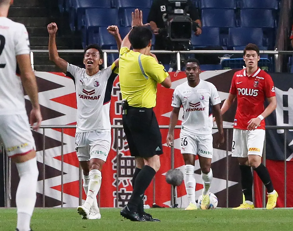 <浦和・C大阪>試合終了の瞬間、勝利を喜ぶ清武(左)(撮影・西海 健太郎) Photo by スポニチ 敵地で浦和をシャットアウト!連勝で4位浮上 ギャラリーで見る この記事のフォト セレフォトの写真一覧 もっと見る