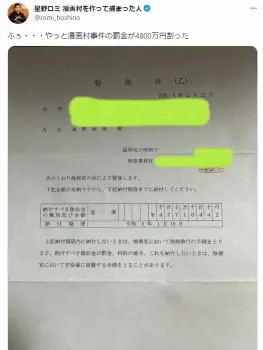 この日、星野氏は「ふぅ…やっと漫画村事件の罰金が4800万円割った」とつづり、督促状の写真を公開。福岡地方検察庁から送られてきた督促状には「下記金額が未納ですから、下記納付期限までに納付してください」と「4771万442円」の金額が記されている。期限は「令和5年1月10日」で、納付期限内に納付できない場合は「検察官において強制執行の手続きをとります」として、労役場に留置される可能性もあるという。この期限はすでに過ぎているが、支払い済みなのかは記されていない。