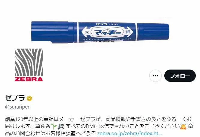 筆記具メーカー大手「ゼブラ」公式ツイッターアカウント