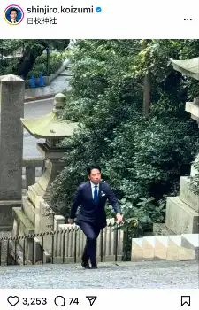 小泉元環境相はこの日、自身のインスタグラムを更新。「今日から自民党総裁選が始まります。今朝は日枝神社で静かに参拝し、必勝を祈ってきました」と日枝神社を参拝する姿を投稿した。