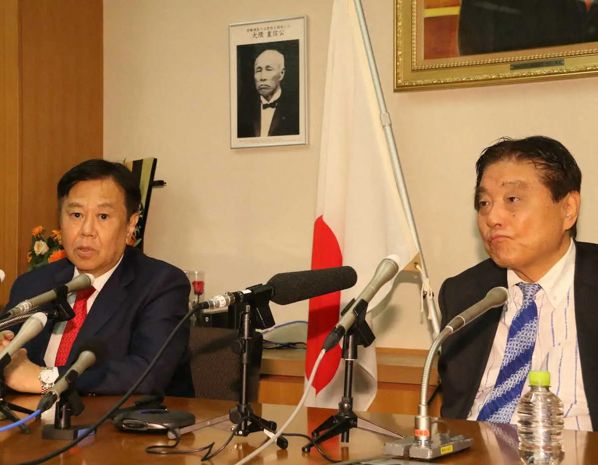 前衆院議員の原口一博氏(66)と前衆院議員の河村たかし氏(77)が24日、国会内で新党「減税日本・ゆうこく連合」の結成会見を開いた。