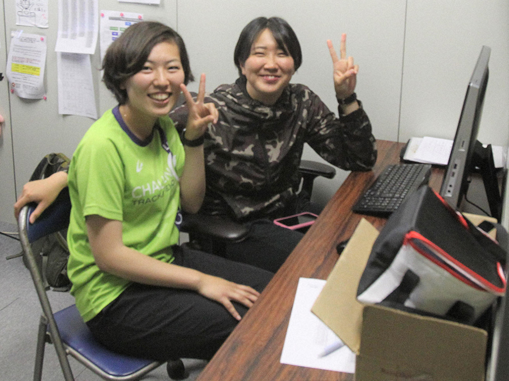 チームを支える主務の新原さん(左)と郡