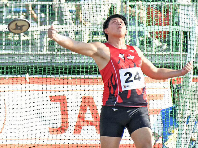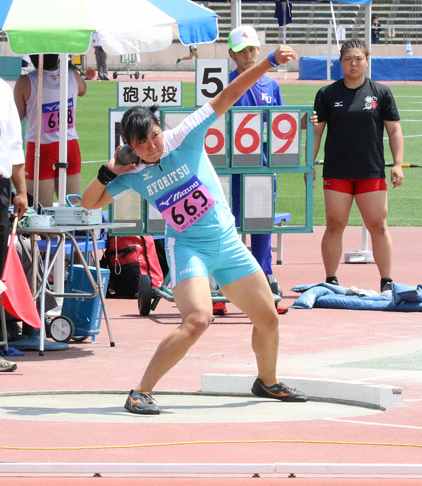 国内2連覇中の砲丸投げをする郡