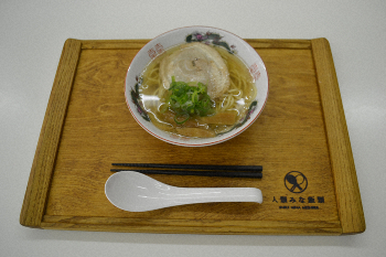 【魅惑の学食 人気店がコラボ「人類みな飯類」】関西屈指の人気ラーメン店「人類みな麺類」などを展開する「UNCHI(株)」がプロデュースした「人類みな飯類」。メニューにある3種類のラーメン「人類みなOGU」「くそオヤジ最後のOGU」「世界一暇なOGU」(いずれも学生・職員は500円、一般700円)はそれぞれの店舗の味を再現しており、行列ができる名店の味をその場で食べ比べることができる。しかも替え玉が1回無料とあって、学生には大人気。現在は春期休暇期間で、新学期に合わせて営業を再開する。