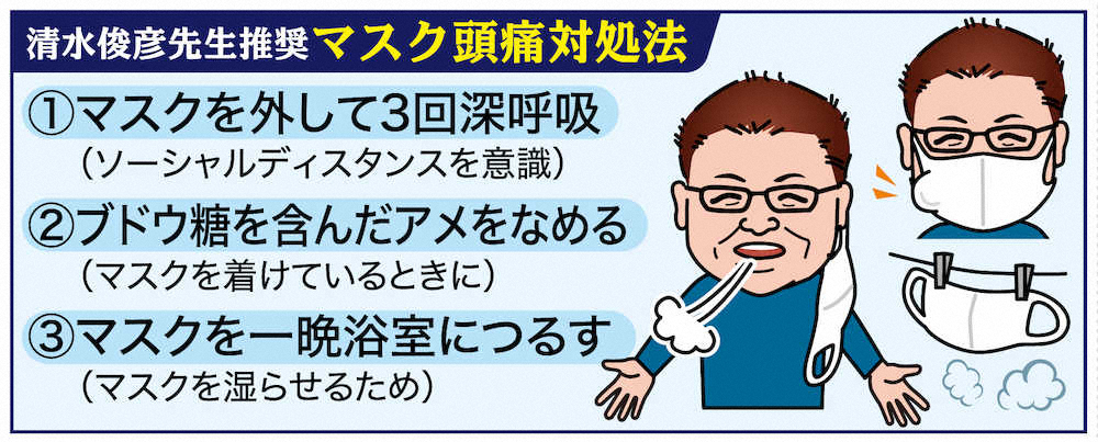 マスク頭痛について清水先生に教えていただきました Photo by スポニチ 【生島ヒロシ オヤジの処方箋】簡単に取り組める「マスク頭痛」対処法 ギャラリーで見る この記事のフォト 旅・グルメ・健康の写真一覧 もっと見る