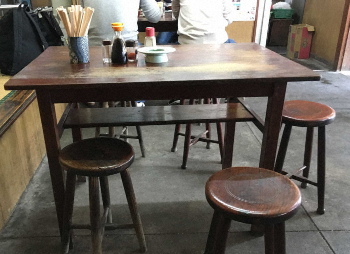 コンクリート打ちっ放しの灰色の床。使い込まれた木のテーブル。昔懐かしい木の丸椅子。座面が何十年と客の尻に磨き上げられスベスベのピカピカだ。