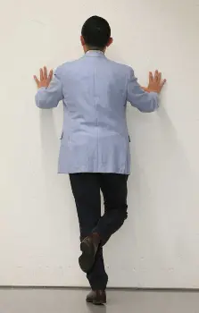 道具は使わない。壁に手をついて腕立て伏せをしたり、寝転んで足を少し上げて腹筋したり。壁での腕立て伏せは、壁につく手の幅を広げたり、足が床につく位置を壁から遠くすれば負荷が増す。そうして徐々に、鍛えていくという方法です。