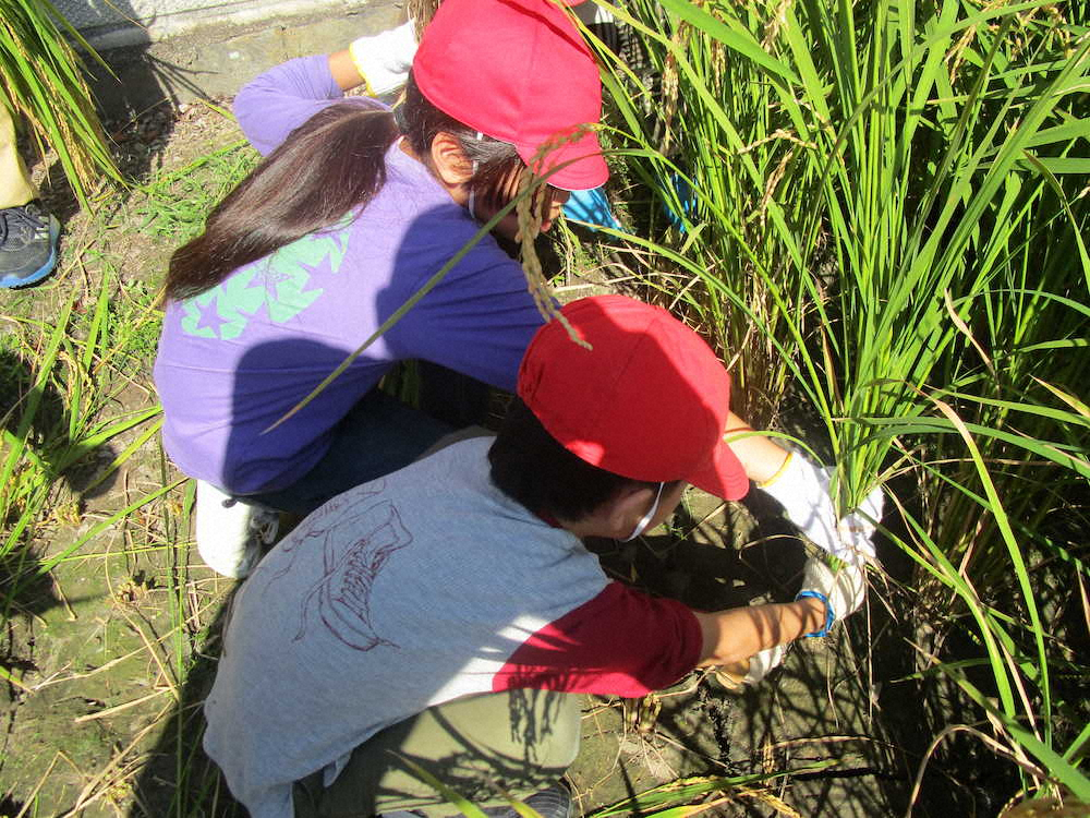 刈り取った稲を持っている低学年の子も、次は麻ひもを結ぶ側になります Photo by スポニチ 【第16回】食の安全を地域の人と考える② ギャラリーで見る この記事のフォト このゆびと~まれの写真一覧 もっと見る
