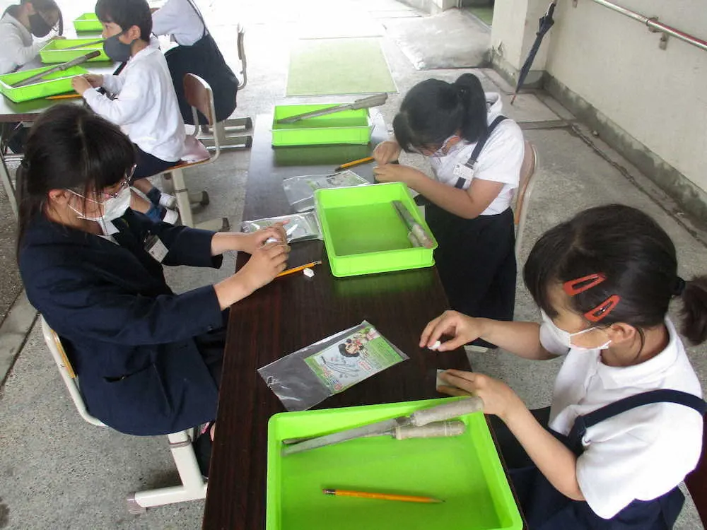 デザインしたまが玉をおっちゃんが大まかに切ってくれます