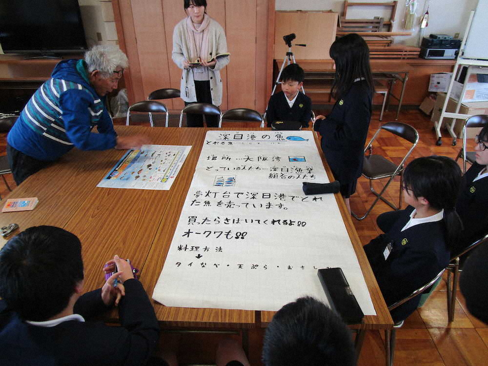 一度、こうした学習をマスターすると児童たちもより興味を持ちます。漁業の学習では、自分たちで役割を決めて深日漁港へインタビューに行きました。