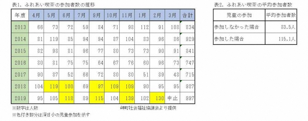 資料1は岬町社会福祉協議会が主催する深日地区の「ふれあい喫茶」の参加者の推移をまとめたものです。子どもたちが参加するようになってからとても参加者が増えていますよね。また、来られた方の滞在時間も増えているそうです。多くのご高齢の方が月に一度、深日小の子どもたちとの交流を楽しみにしておられると聞き、本当に誇らしくうれしい気持ちになります。