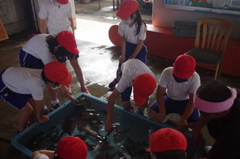 深日(ふけ)漁協の方々の協力で、深日小にしかできない学習が新しくスタートしました。