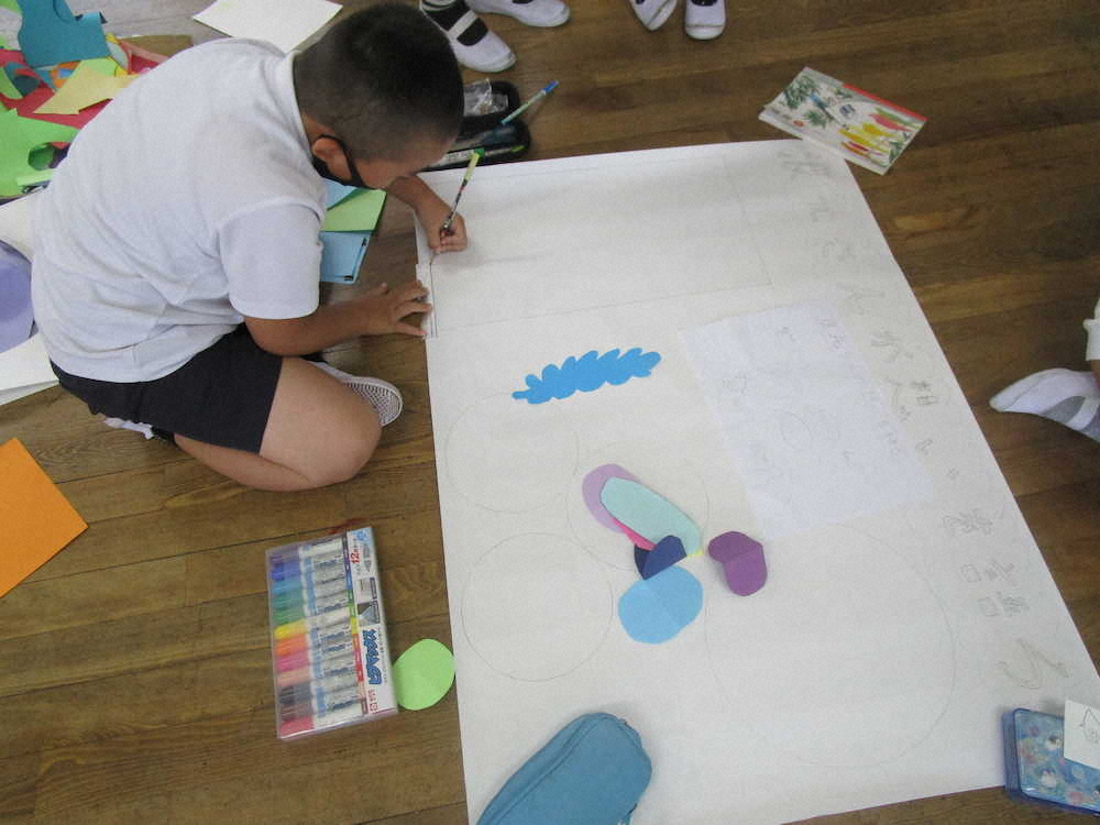 これまで深日小では様々な方に、ゲストティーチャーや聞き取り学習に参加していただきました。ただ、担当者として、また教師としてもう一歩踏み込んだ学習ができないかと思い、今回は「いっしょにつくろう」をコンセプトにしました。子どもたちの「まとめ学習」を大人も交えて作成すれば楽しいのではないかと考えました。