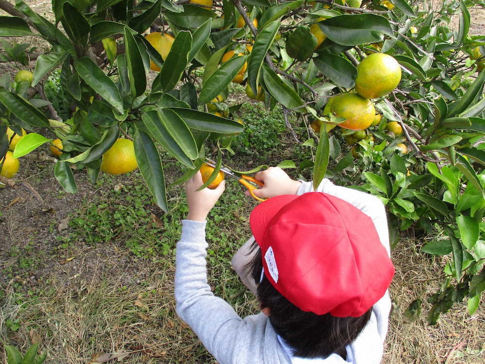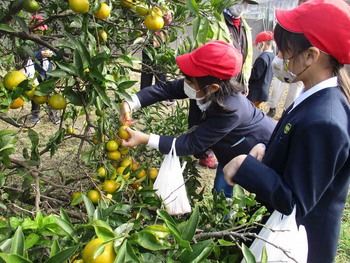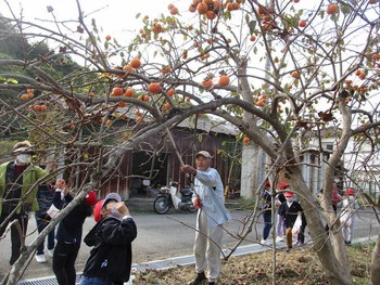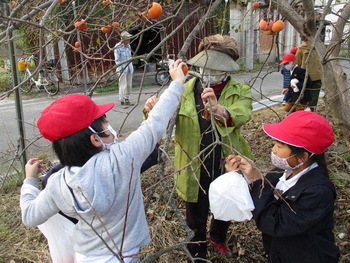 まだまだ背が届かない2年生のために、高いところにある柿やみかんは採っていただきました。