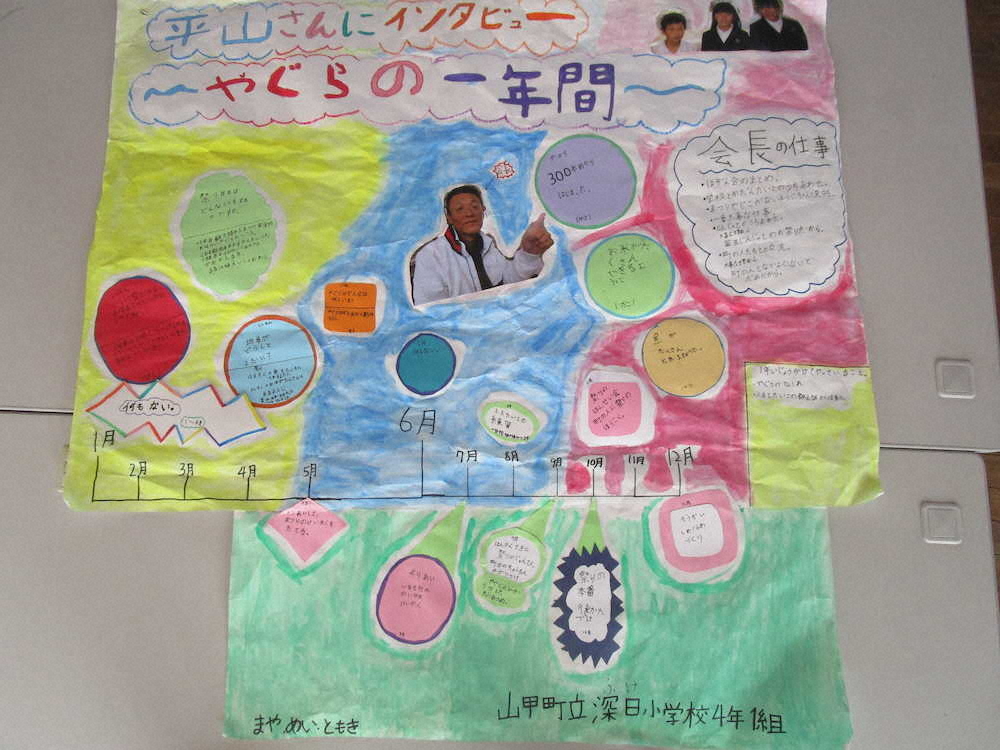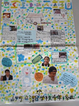 4年生は社会科と総合的な学習の時間のなかで、深日やぐら保存会のみなさんにご協力いただきながら、模造紙に学習のまとめを書きました。