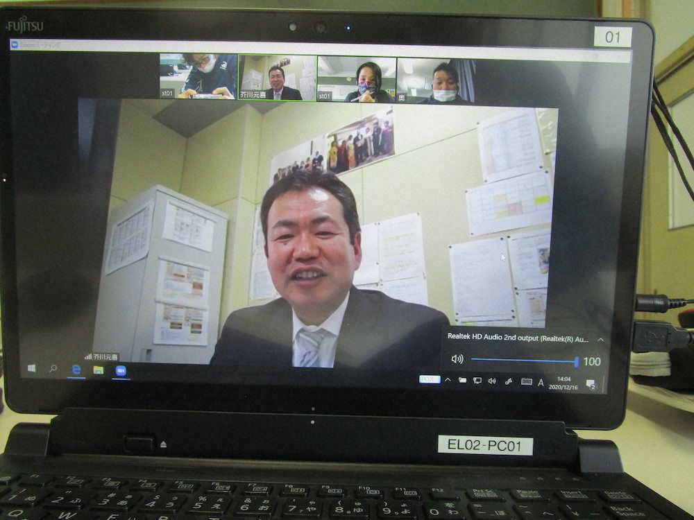そこで、深日(ふけ)小の情報教育担当の奥先生が芥川先生と相談して、パソコンを使ったリモート会議をすることになりました。