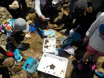 全身びしょびしょになって遊んでいる子もいれば、じっと観察している子、友達と生き物を探し続けている子。みんなが「磯遊び」を満喫していました。