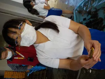 漁師さんや水産技術センターの睦谷(むつたに)さんに、名前や生体を聞いて、その場で暗記し、一生懸命伝えようとしています。
