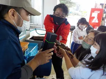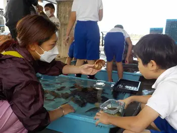 漁師さんたちのサポートをもらいながら生き物の感触を確かめていきました。