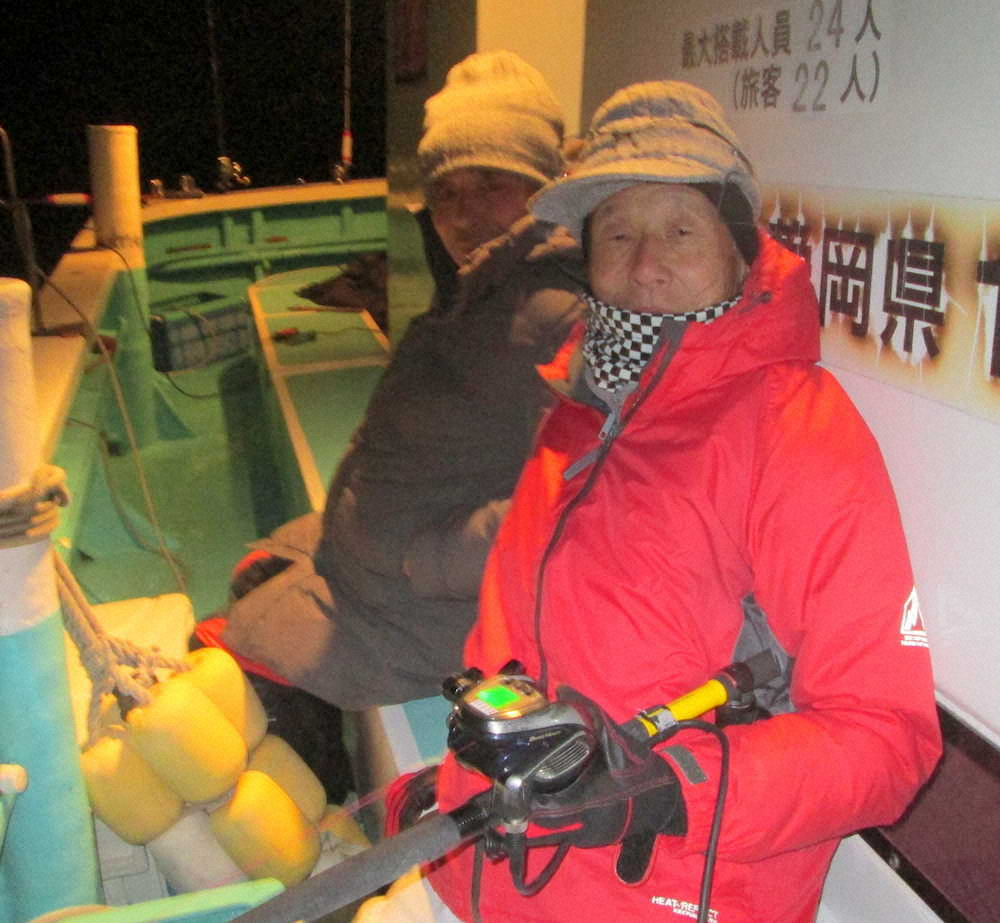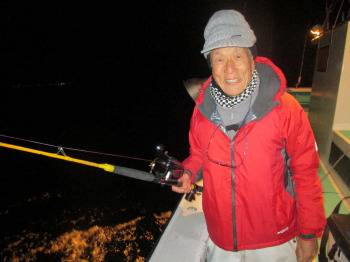 「はい、始めてください」。稲本貢一船長の合図。水深は50メートル前後。楽勝の夜になるはずだった。しかし、いくら誘っても乗らない。お触りだけ。「こんなの生まれて初めて」。さしもの田中さんもギブブアップ。秋山さんともども「伊勢原組は討ち死にだ」。苦笑いしつつ納竿するしかなかった。隣で根掘り葉掘り聞いたのが疫病神を呼んだのかも。 後日、海の様子も回復して竿頭に名前があった。きちんとリベンジを果たしたようだ。